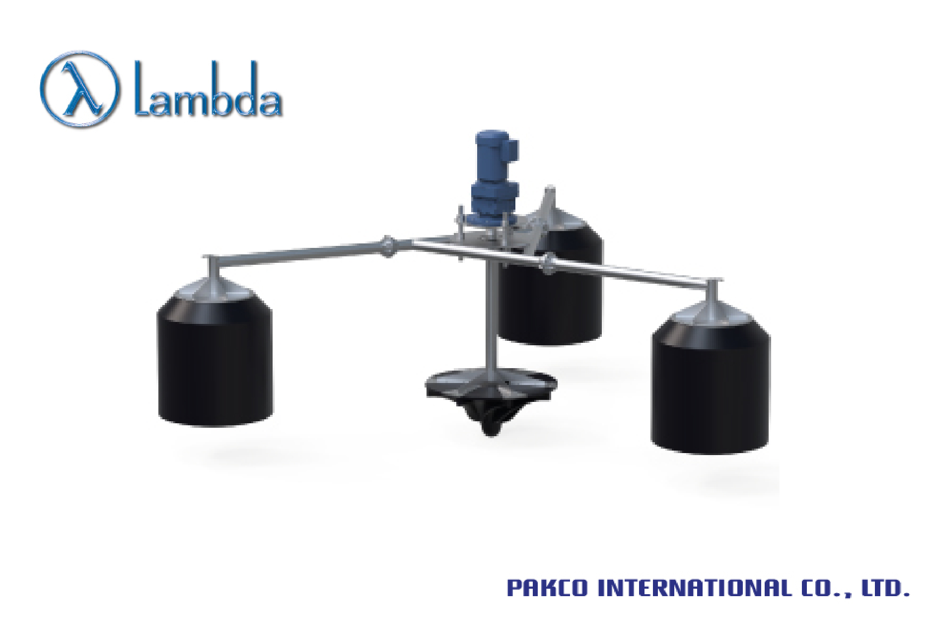 โครงสร้างเหล็กทำจากเหล็กอ่อนชุบสังกะสีแบบจุ่มร้อนหรือสแตนเลส ด้วยใบพัดโค้งด้านหลัง PE และลูกลอยสามลูกALL PRODUCTS LOW SPEED SURFACE AERATOR